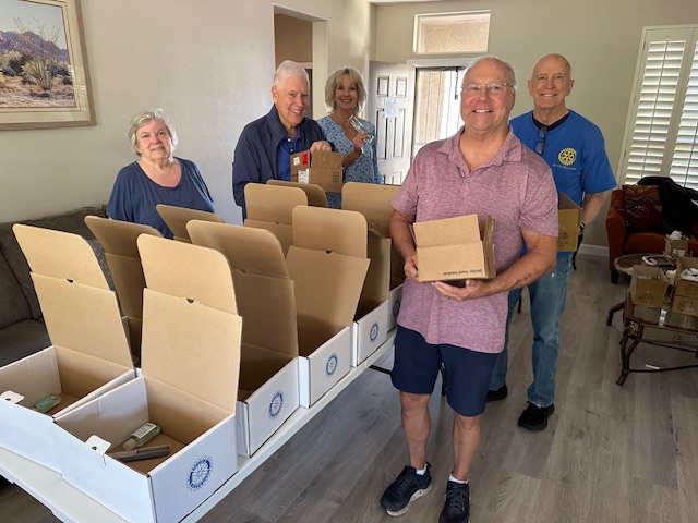 The Rotary Club of Peoria North recently put together 100 boxes of toiletry supplies to be handed out at the Peoria Community Center to people in need.