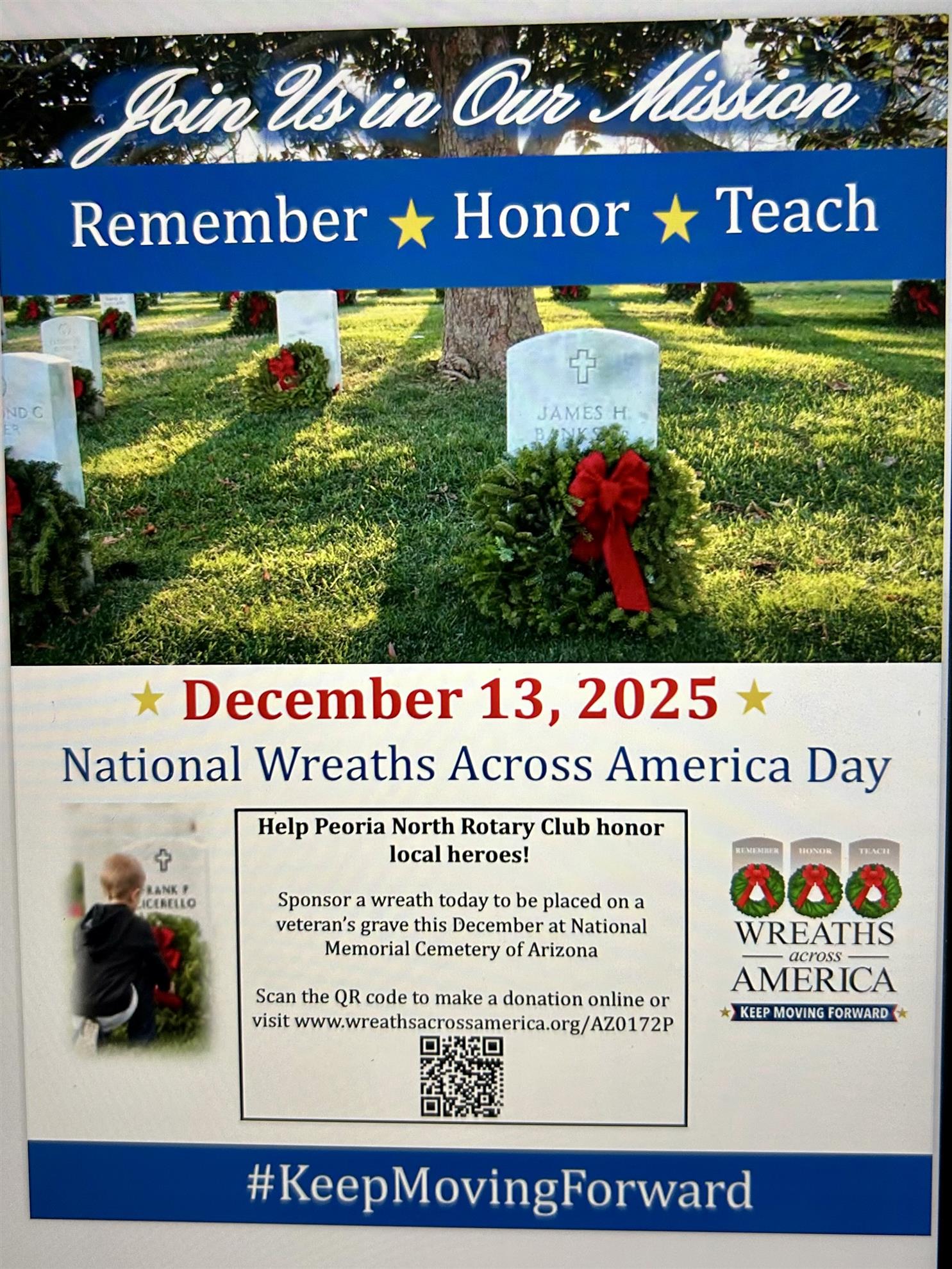 The George and Willi Wheeler Scholarship is available to all students who currently attend a PUSD high school or Mountain Ridge High School. The object of Rotary is to encourage and foster the ideal of service as a basis of worthy enterprise. The scholarship will recognize high school students who demonstrate strong leadership skills that include opportunities to serve humanity. The $3,000 Rotary scholarship may be used for any school-related payments such as tuition, books, software and/or equipment at any accredited college, university, vocational school, or certificate program. The scholarship is named after two long-time club members: George and Willi Wheeler. George was a founding member of the Peoria North Rotary Club and a former Arizona Rotary District Governor. He passed away in 2022. The Wheelers were strong supporters of education and instrumental in organizing a variety of club projects aimed at promoting literacy. The club recognizes Students of the Month at several Peoria high schools and has sponsored several book drives to benefit Peoria schools. For over 10 years, a signature project of the club was to purchase and distribute dictionaries to third-grade students in the Peoria Unified School District. “All during their dedicated careers in Rotary, the Wheelers traveled to many countries to distribute schoolbooks, administer the polio vaccine, provide computers to schools and bringing goodwill to underprivileged children,” said Darlene Eger, president of the Peoria North Rotary Club. “Their dedication to helping children is the reason the George and Willi Scholarship was founded. It is Rotary’s desire to help as many students as possible to achieve an education and eventually hoping to eliminate poverty throughout the world.” The deadline to apply for the 2026 scholarship is Dec. 31, 2025. Click here to download the application. For additional information, email the club at desertdar06@gmail.com. |
